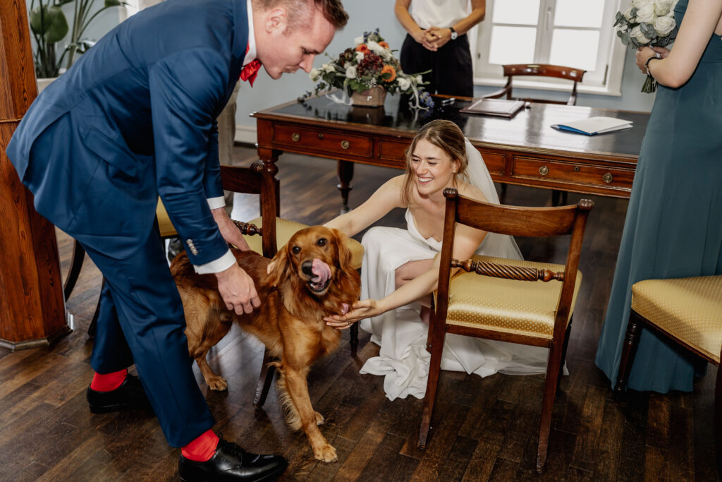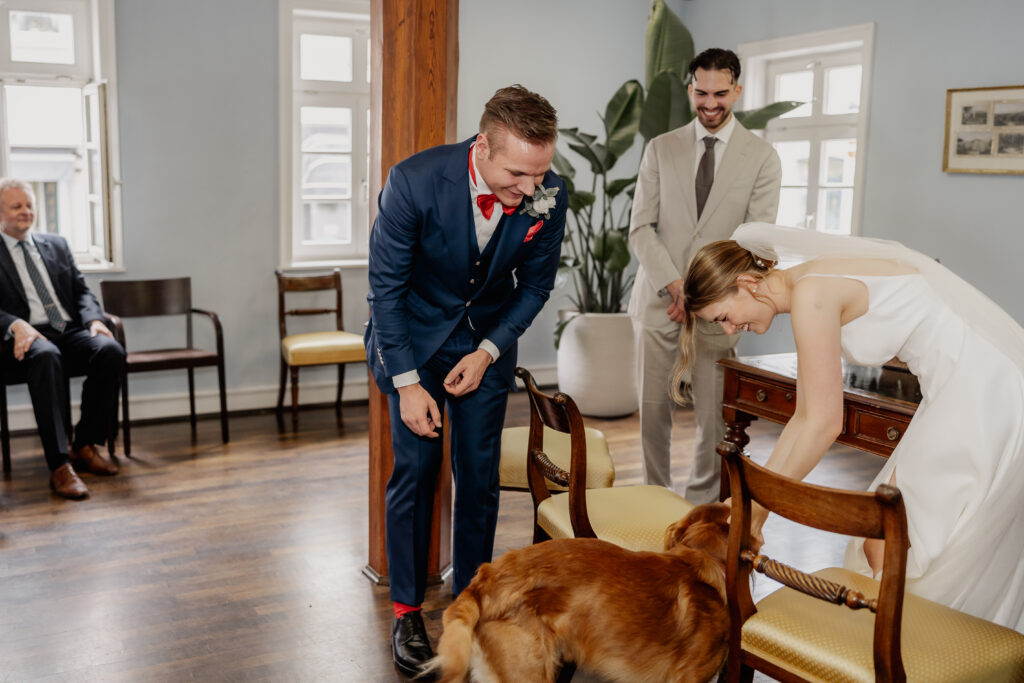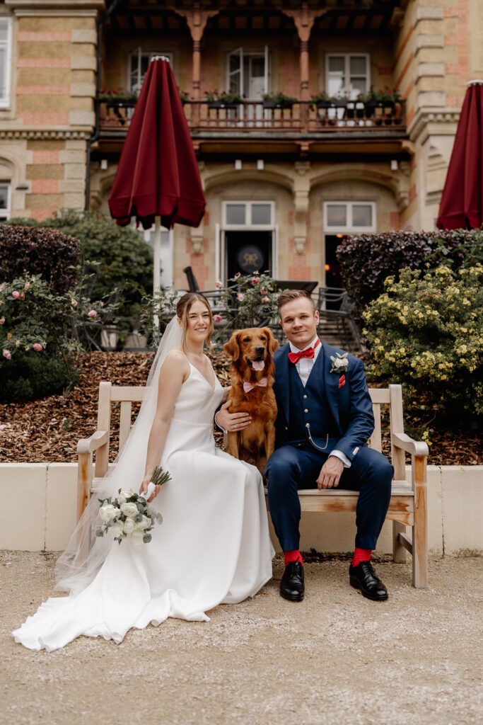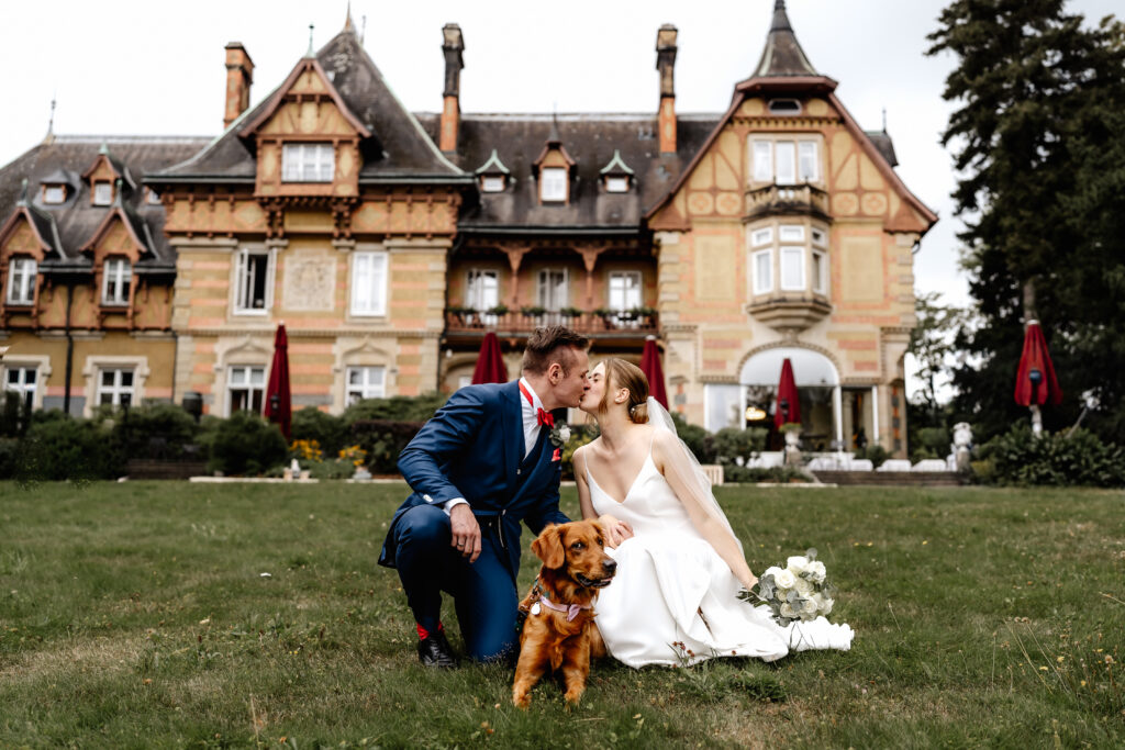 After the ceremony, the day continued in the Taunus at Villa Rothschild. Surrounded by the elegant setting, timeless and intimate memories were created. Their dog was, of course, there as well and naturally became part of the photos.