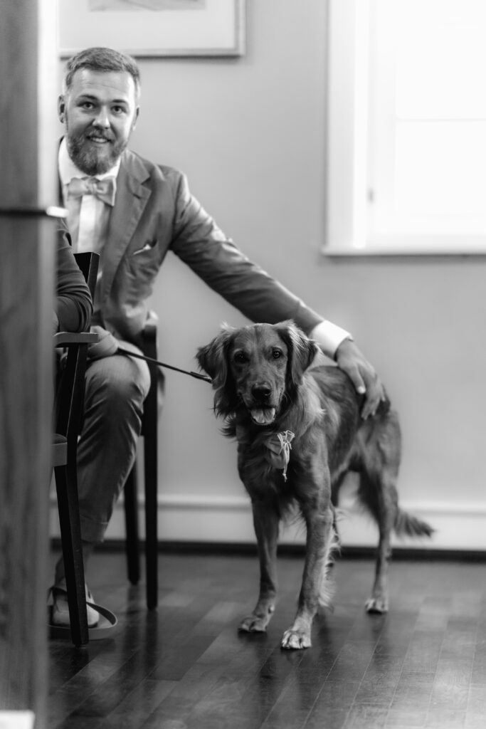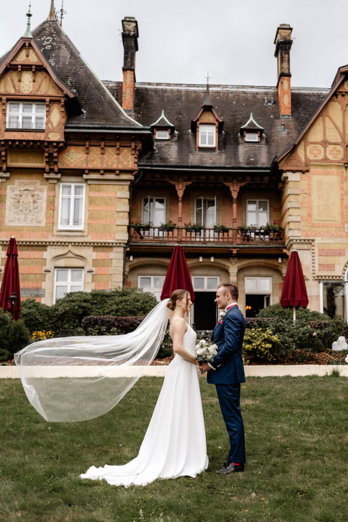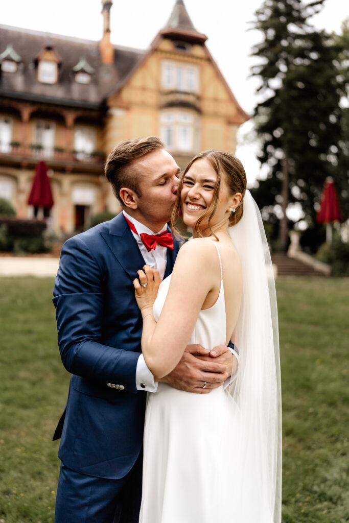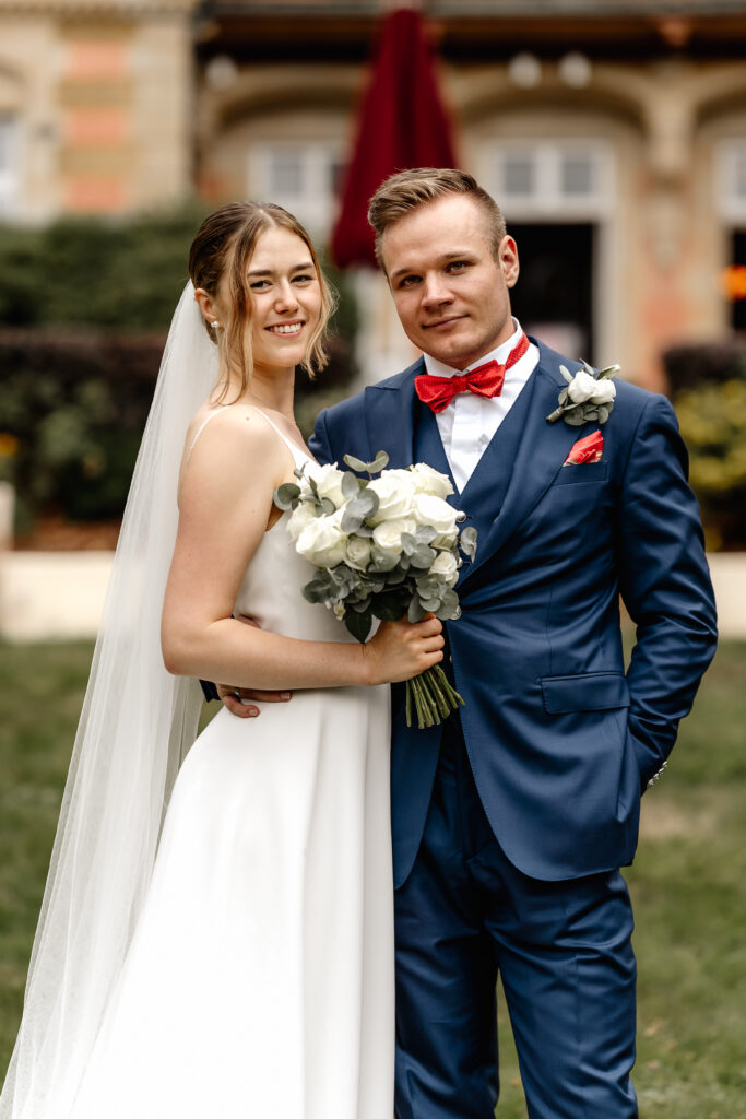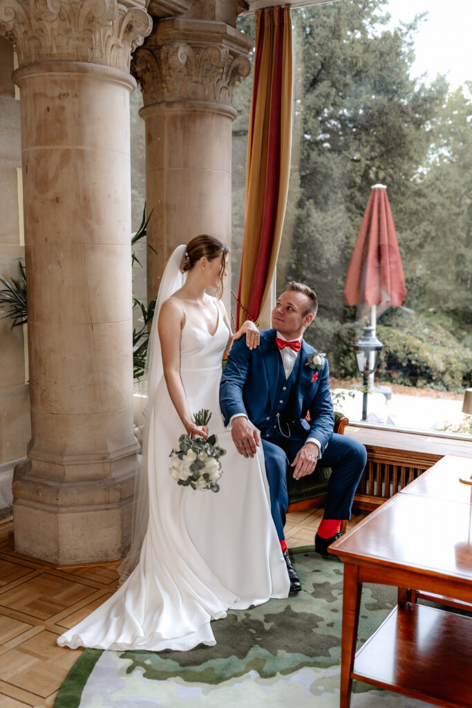 After the ceremony, the day continued in the Taunus at Villa Rothschild. Surrounded by the elegant setting, timeless and intimate memories were created. Their dog was, of course, there as well and naturally became part of the photos.