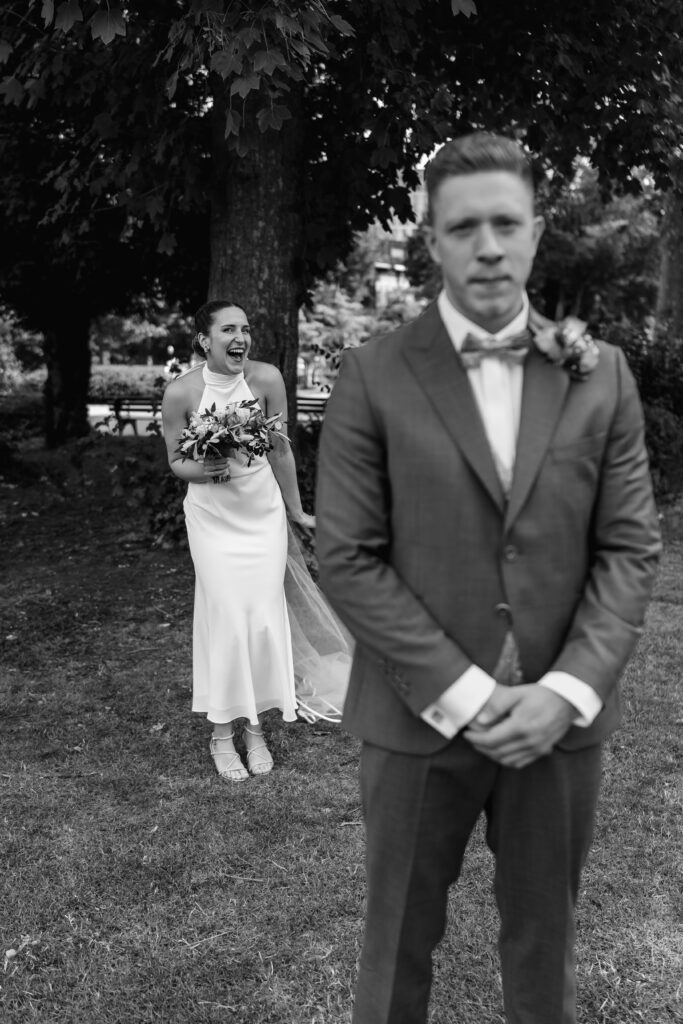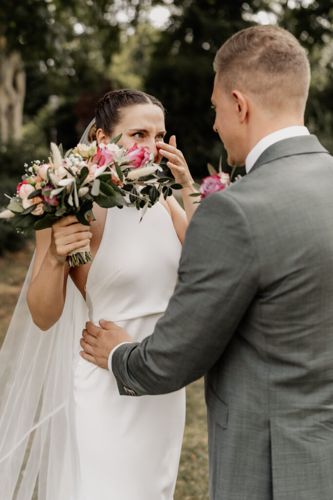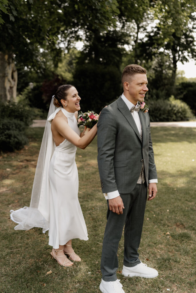 We met in the park in front of the Düsseldorf Registry Office for the First Look, an intimate moment just for the two of them, when they saw each other for the first time that day.