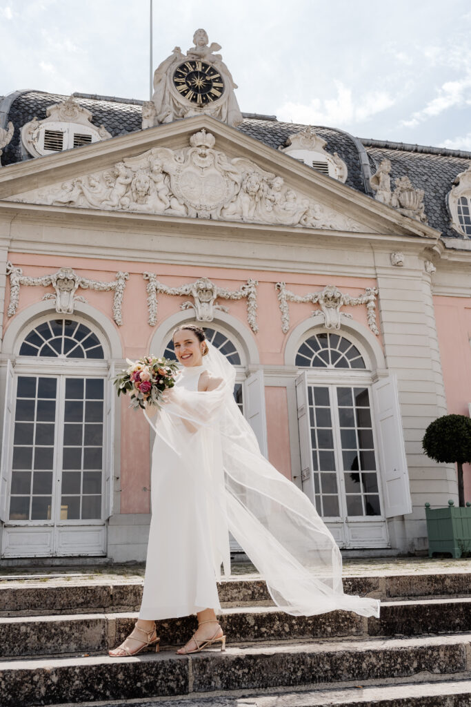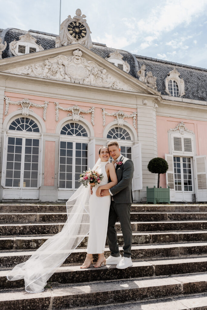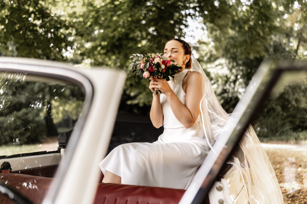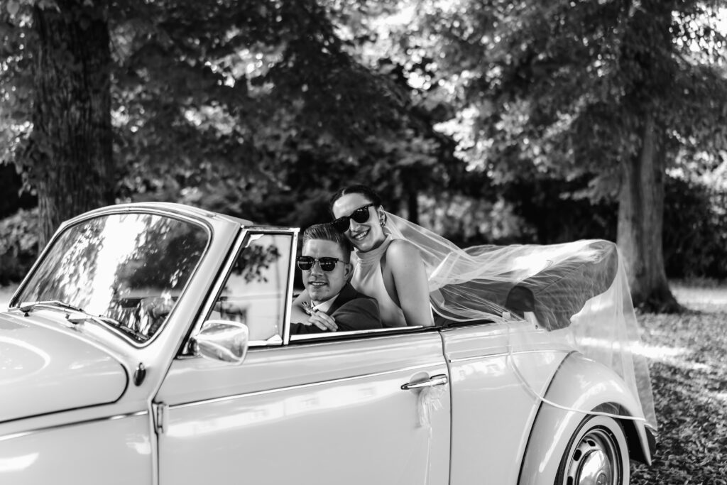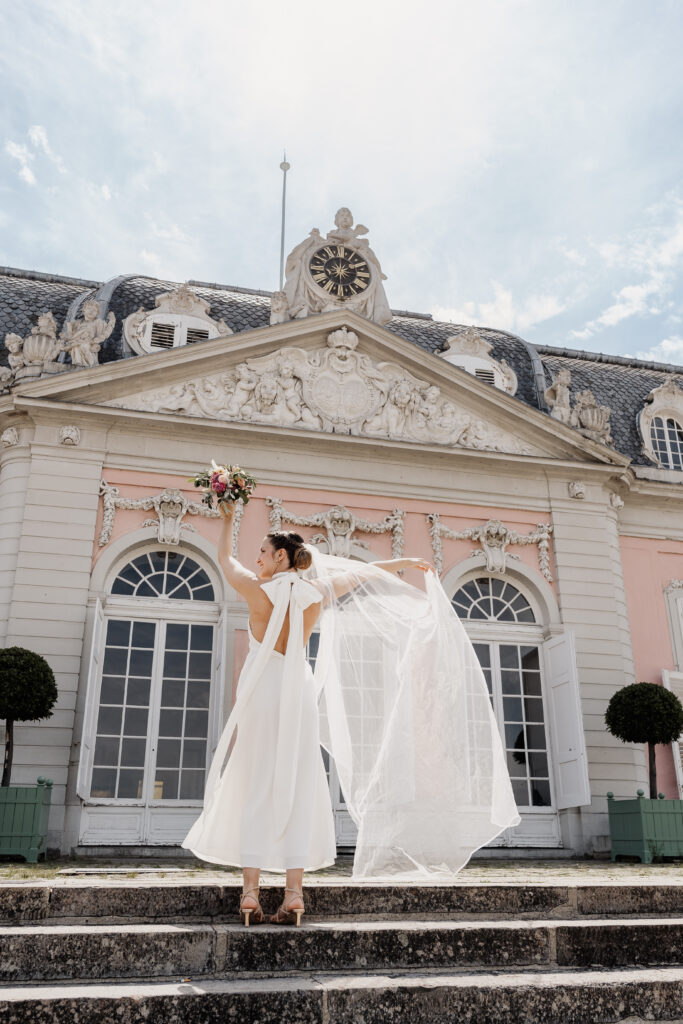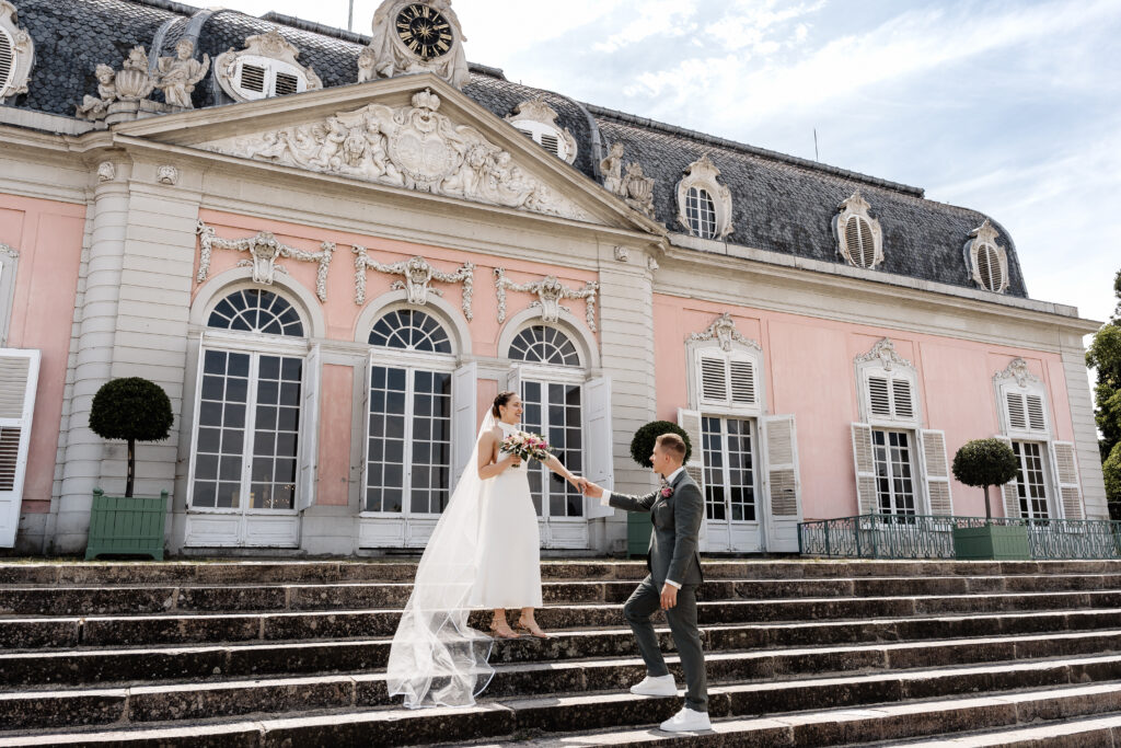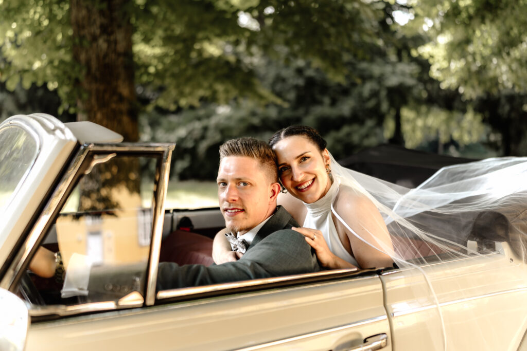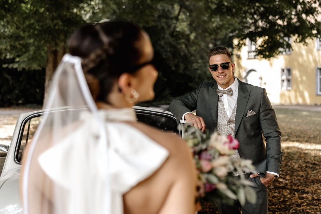 Following the ceremony, we took advantage of the stunning backdrop of Benrath Palace for the couple’s photoshoot and the family group portraits. We were accompanied by a beautifully maintained Volkswagen Beetle, which truly added something special to the shoot.