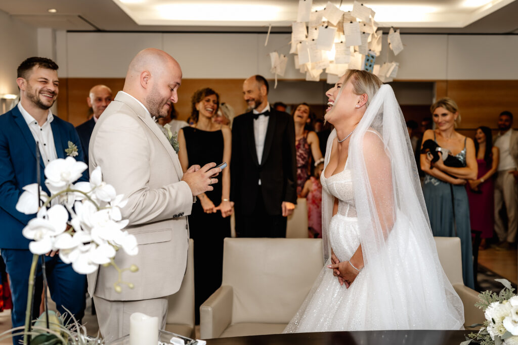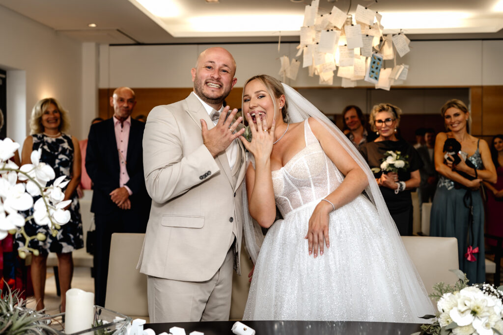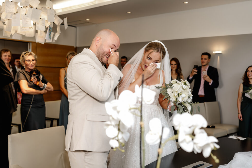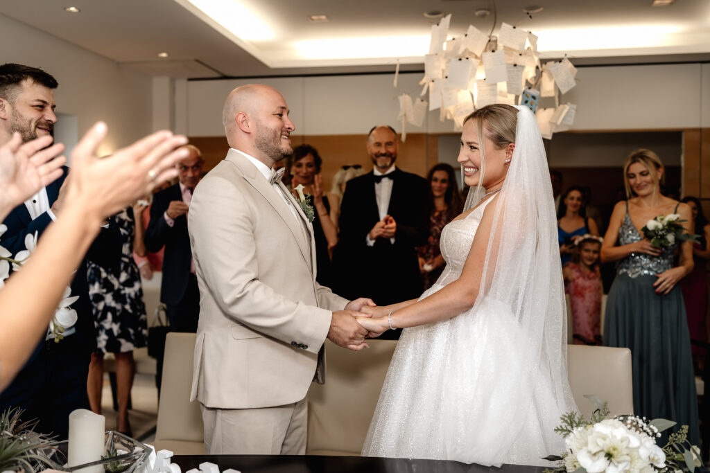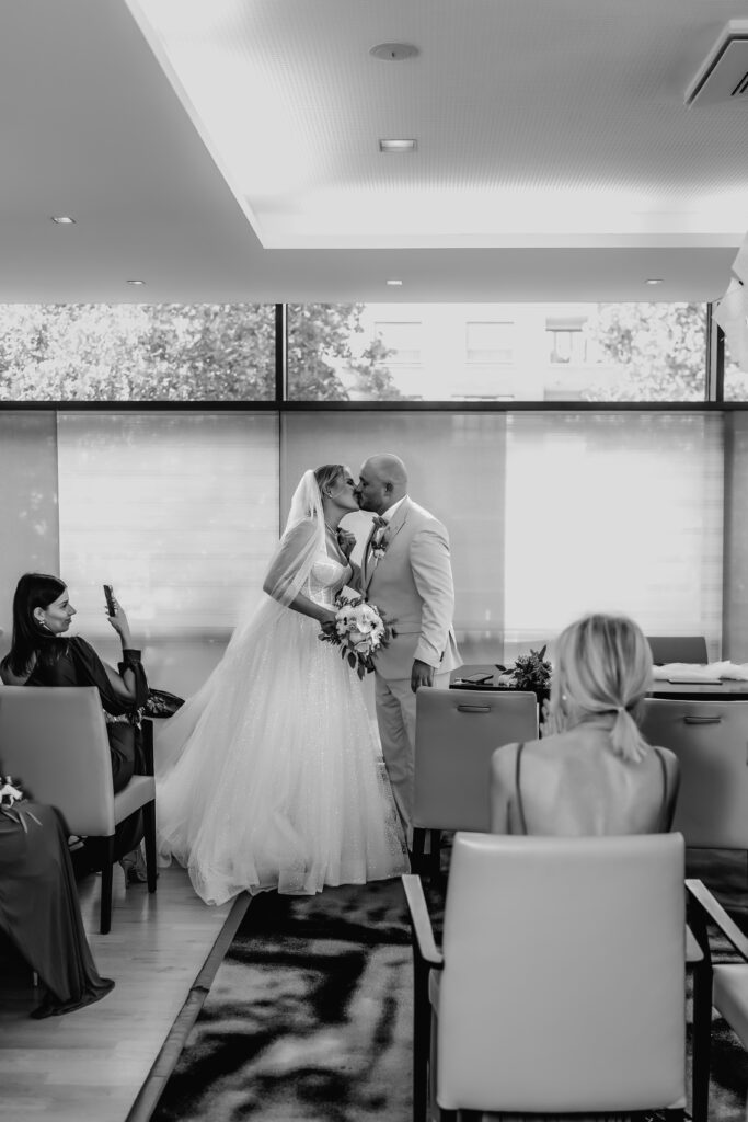 Lara & Dario’s civil wedding ceremony took place at the Hofheim Registry Office. Surrounded by their closest loved ones, they exchanged vows in a warm and intimate atmosphere.