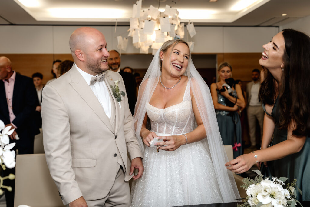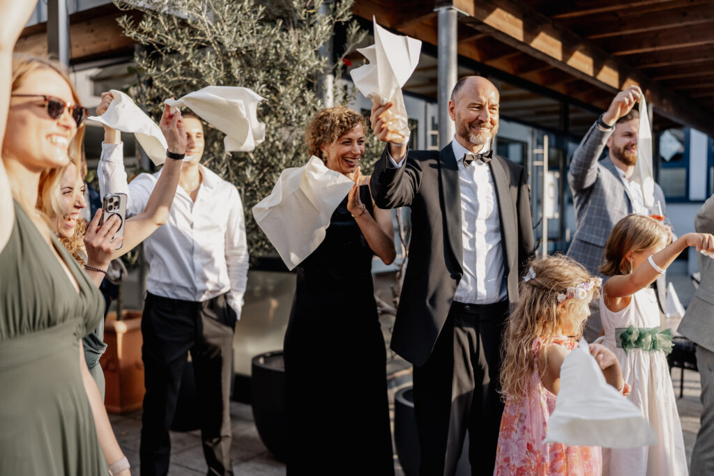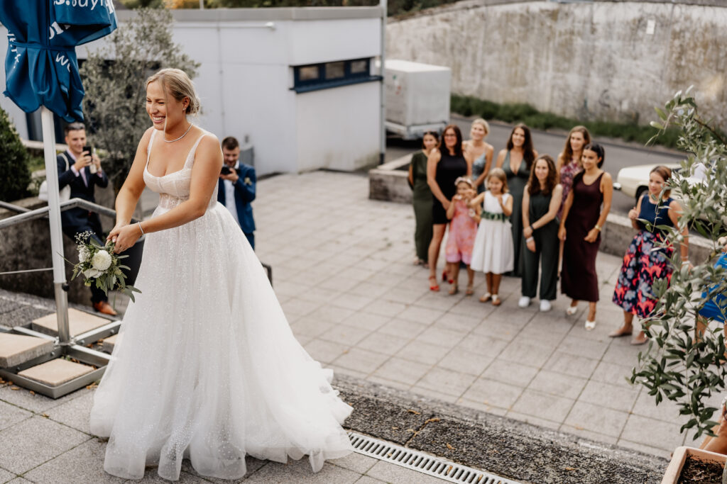Afterwards, the couple were warmly welcomed by their families and friends at Restaurant Calogero. Following the aperitif, group photos, and the bouquet toss, the day slowly came to an end with a relaxed dinner together.