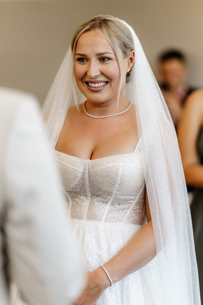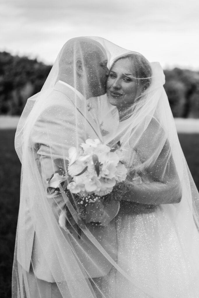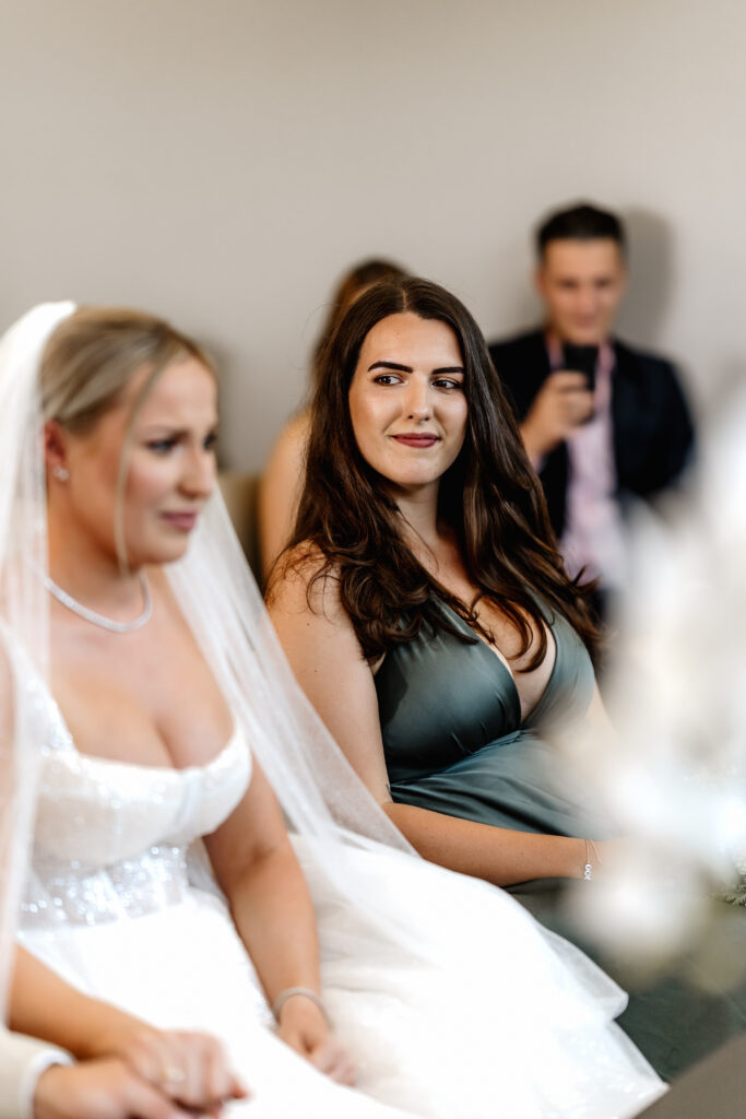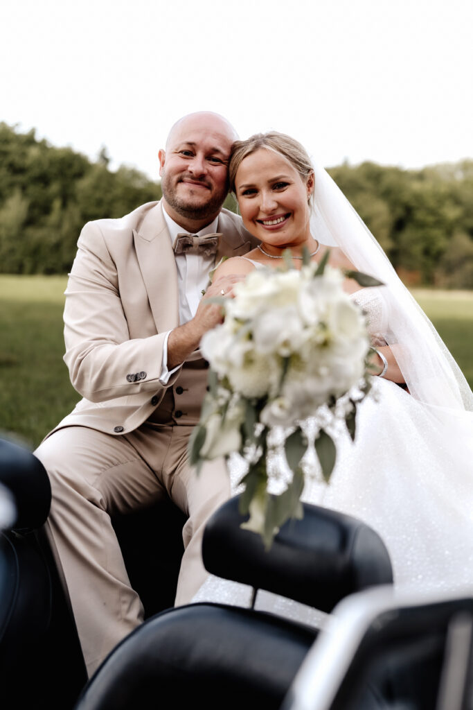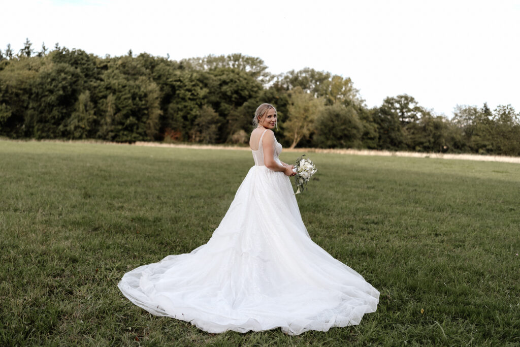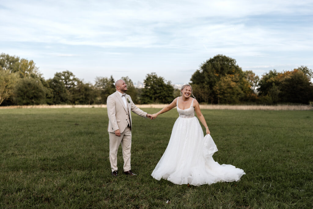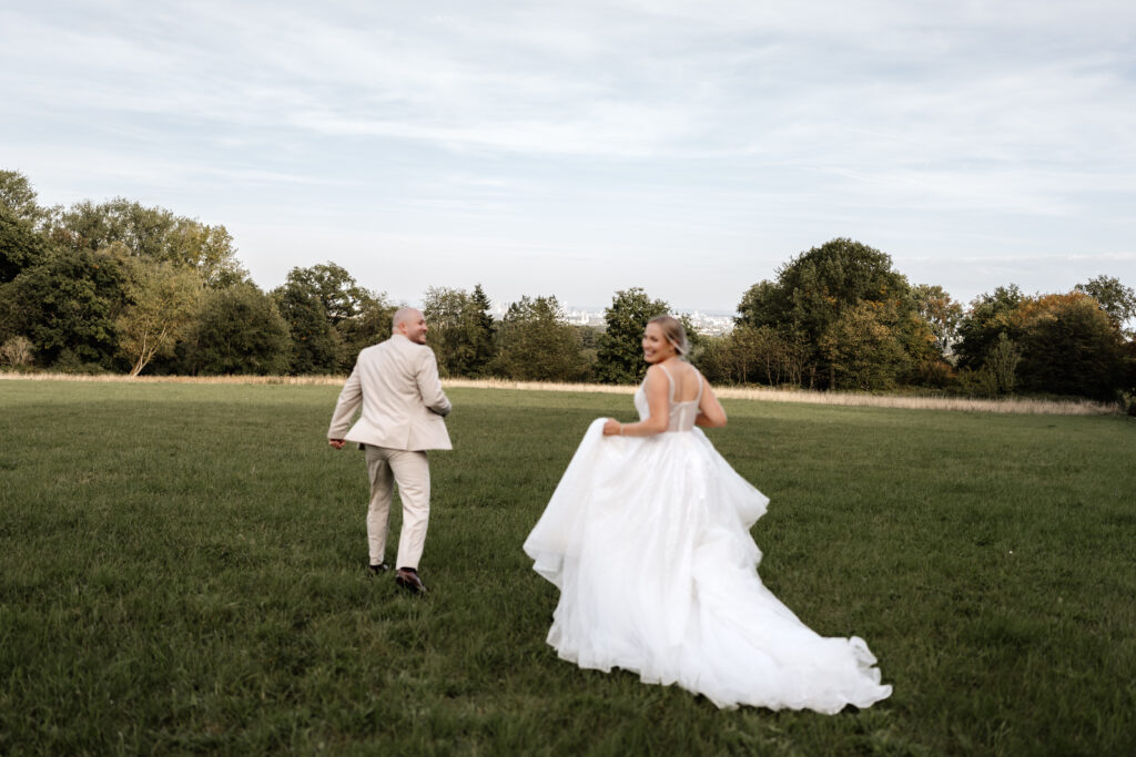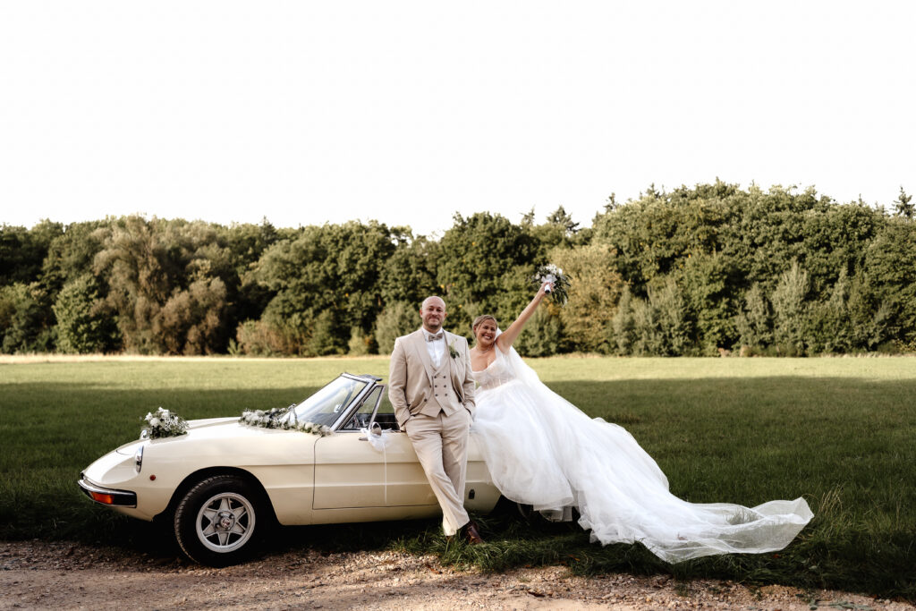 After the ceremony and a champagne reception on the registry office’s rooftop terrace, we headed to a nearby field for the couple’s photoshoot. The open landscape and the elegant wedding car gave the images a beautifully timeless feel.